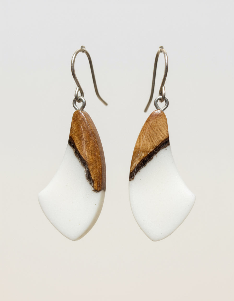 Este hermoso par de aros colgantes de madera encapsulada en resina es una verdadera obra de arte artesanal. Con un diseño nativo y contemporáneo, cada pieza es única y hecha a mano con materiales de alta calidad.