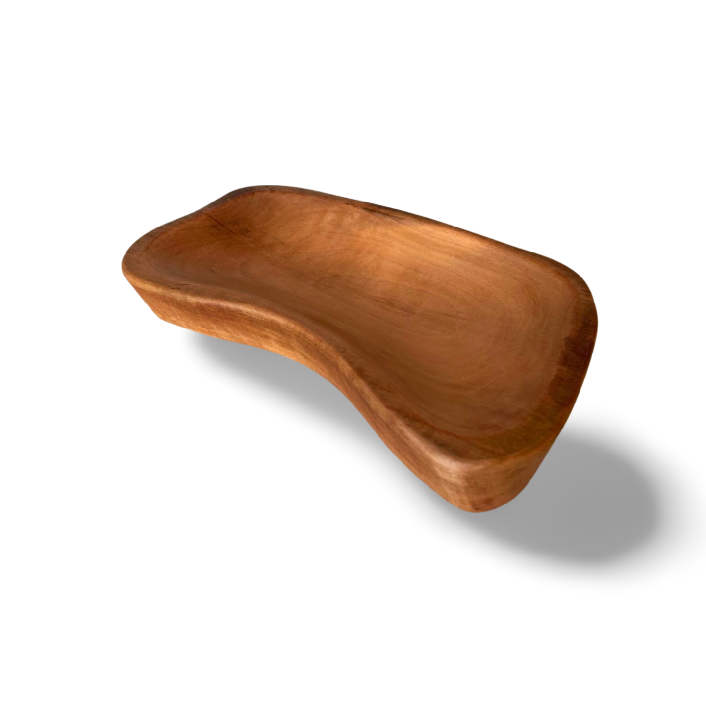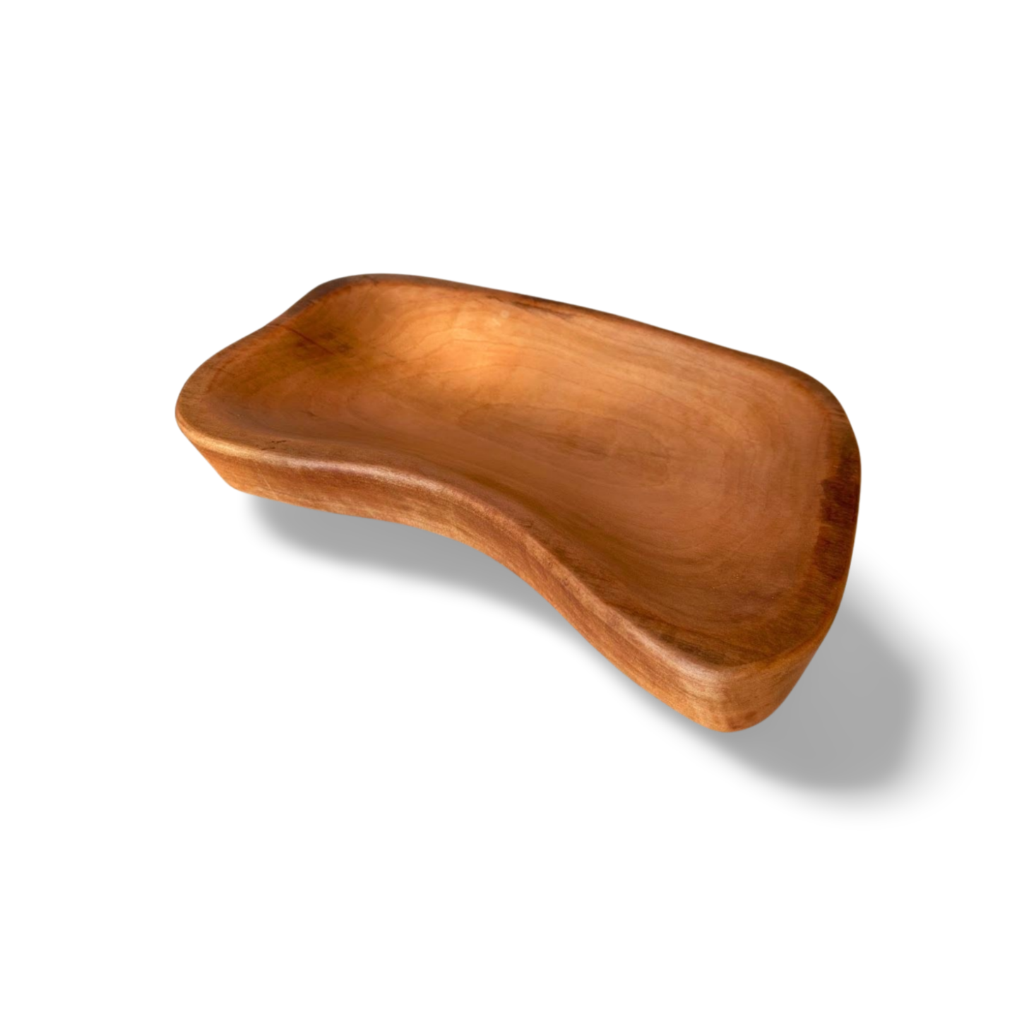 Bandeja o fuente elaborada a partir de una sola pieza de madera nativa trabajada artesanalmente. Su acabado pulido resalta la belleza natural de la veta y su textura noble.