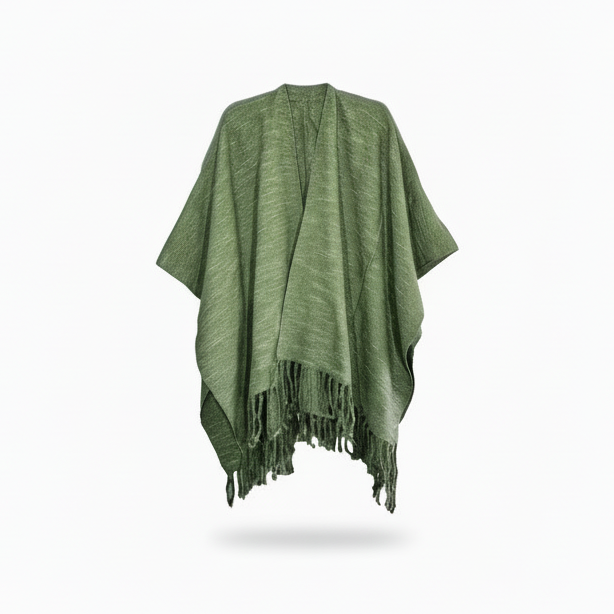 Su ligereza no sacrifica calidez, y su confección manual asegura una caída fluida que se adapta a distintos cuerpos y estilos.